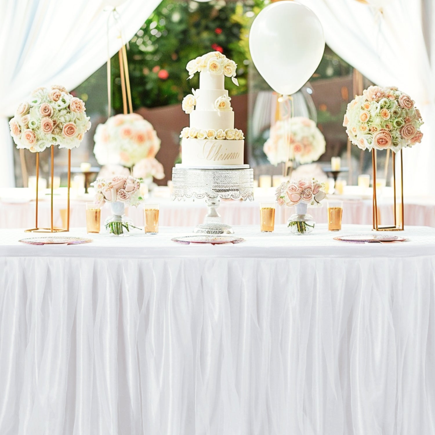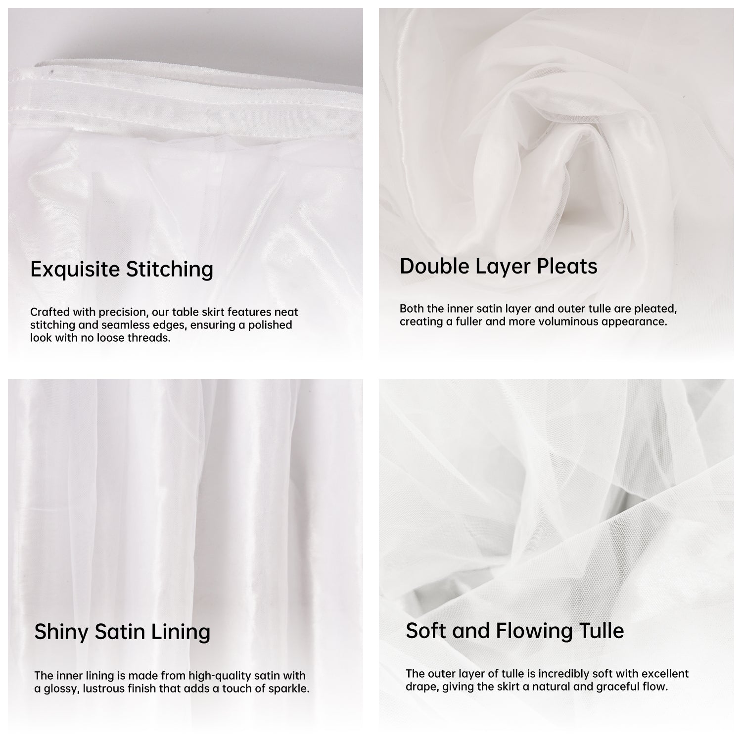 6ft Tulle Table Skirt with Bow Banner – White Ruffle Tulle Tablecloth