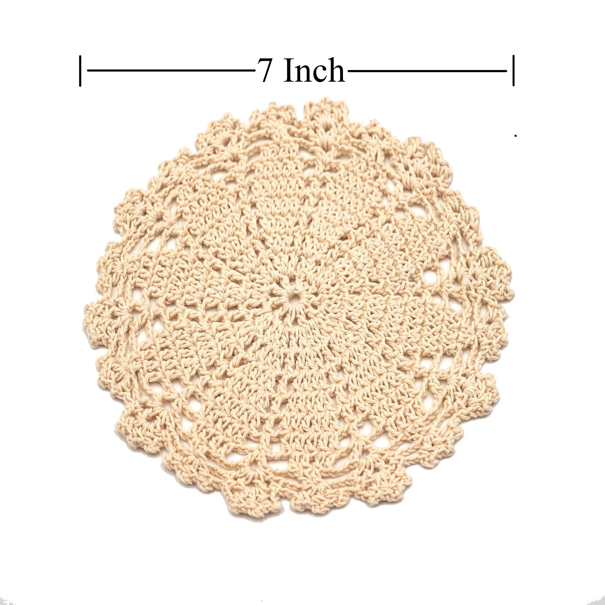 Add timeless charm to your home with these handmade 7-inch round crochet doilies. Carefully crafted with fine thread, each doily features intricate lace patterns, perfect for decorating tables, trays, or shelves. A beautiful blend of elegance and craftsmanship.